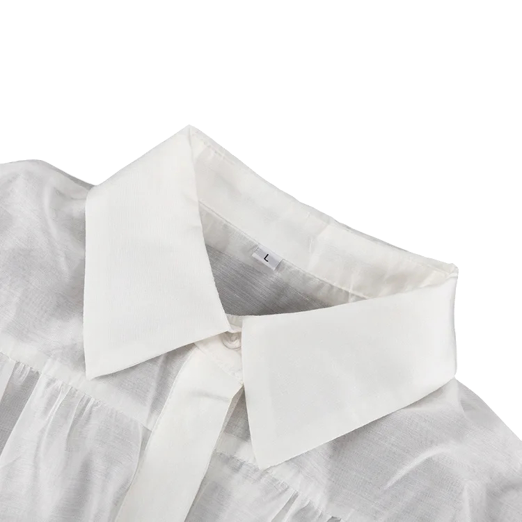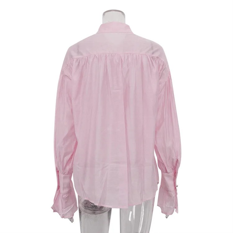 Startpagina Startpagina Kleding en accessoires Dameskleding Dames overhemden Dames casual overhemden Elegante dames éénkleurige blouse met kraag Uitgebreide mouwen Knoopsluiting Stijlvolle blouse van viscose spandex en nylon
