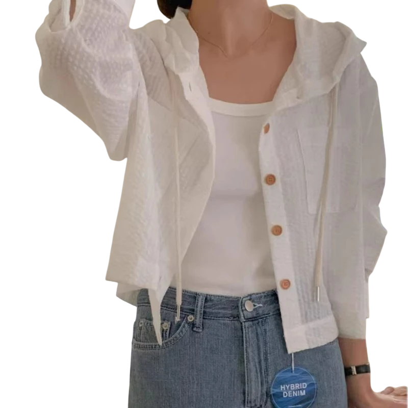Elegante damesblouse met capuchon Vrije snit met knoopsluiting Stijlvolle effen blouse van lichte polyester voor dagelijks gebruik