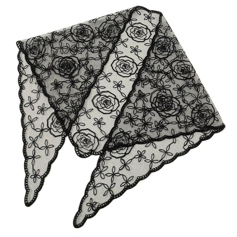 Startpagina Startpagina Kleding en accessoires Dameskleding Dames accessoires Dames sjaals en sjaaltjes Elegante kanten sjaal 130 x 45 cm Driehoekige sjaal voor hoofd en hals Bloemen haarband Licht compact accessoire Vier seizoenen
