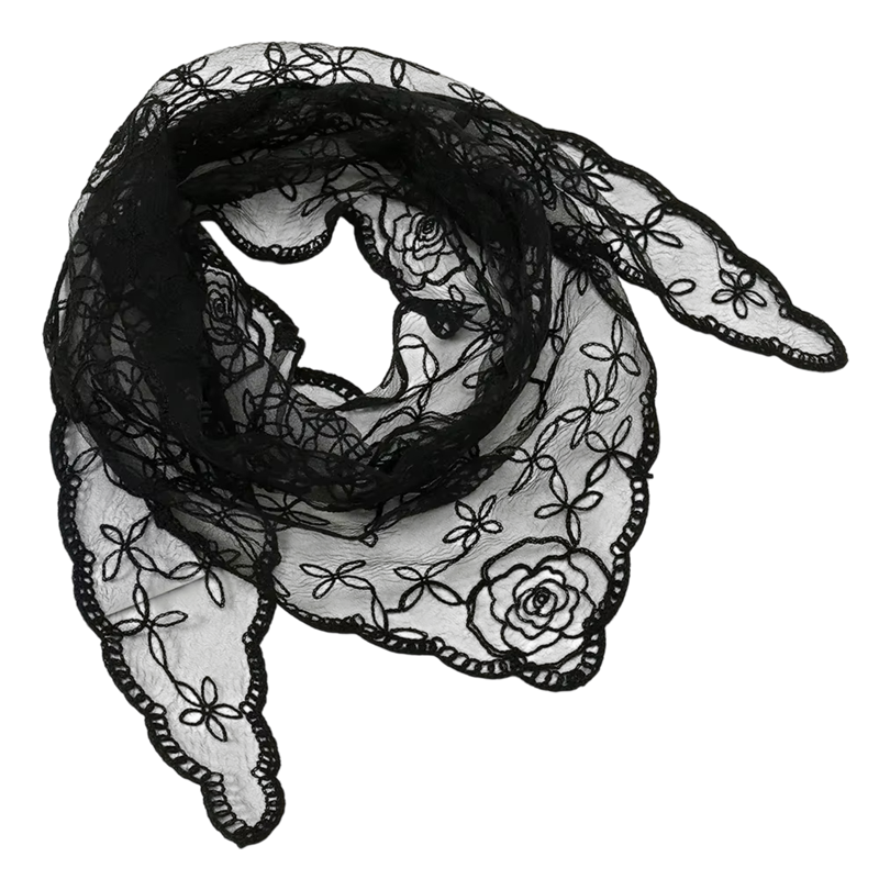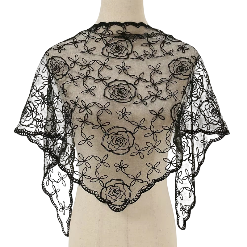 De kanten bloemen sjaal is een lichte, opvouwbare en veelzijdige accessoire voor hoofd, hals en haar, geschikt voor alle seizoenen. Volledige beschrijving