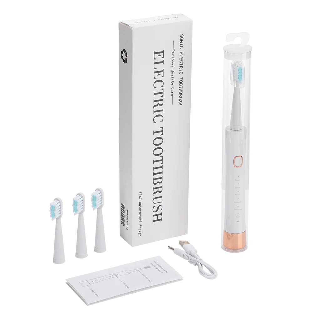 • Inhoud verpakking: 1x elektrische sonische tandenborstel, 4x vervangende opzetborstels, 1x USB oplaadkabel, 1x gebruikershandleiding