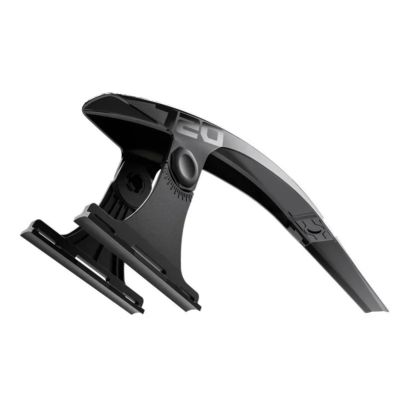 Het spatbord is gemaakt van stevig kunststof, dat lichtgewicht is maar tegelijkertijd voldoende duurzaam voor dagelijks gebruik in zowel terrein als op de weg. Het materiaal weerstaat goed aan vibraties en normale mechanische belasting tijdens het rijden. Een onderdeel van het ontwerp is het snelle bevestigingssysteem, dat een eenvoudige montage en demontage zonder ingewikkeld gereedschap mogelijk maakt. Dankzij de modulaire oplossing kan het spatbord indien nodig worden verlengd of ingekort, zodat het beter aansluit bij de specifieke fiets en rijstijl.