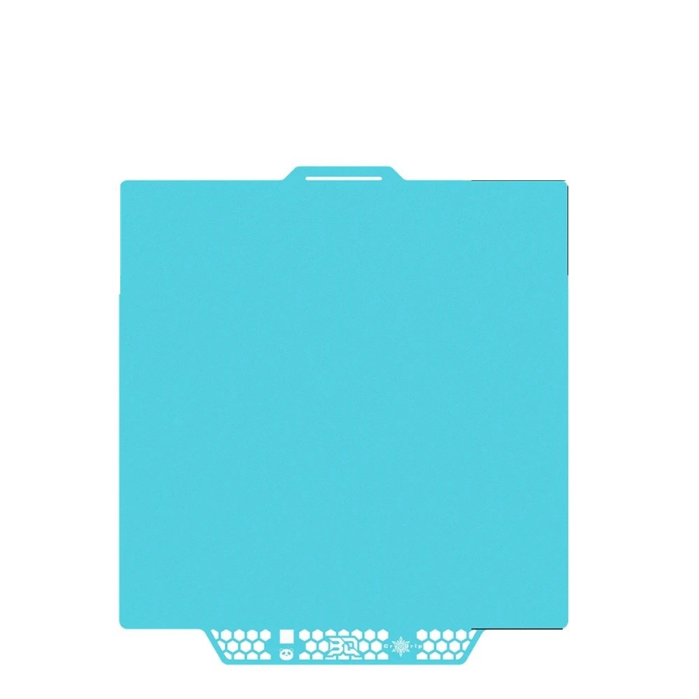 De plaat is dubbelzijdig, wat de levensduur verlengt en het mogelijk maakt om de ideale textuur te kiezen op basis van het type filament. Het fijnere Glacier oppervlak creëert een nette en esthetische uitstraling van de eerste laag en is geschikt voor nauwkeurige prints en technische onderdelen. De plaat kan worden gereinigd met water en een mild zeepje, of indien nodig met alcohol. De constructie is stevig genoeg om langdurig gebruik te weerstaan, en de magnetische bevestiging zorgt voor stabiliteit bij hoge snelheden.