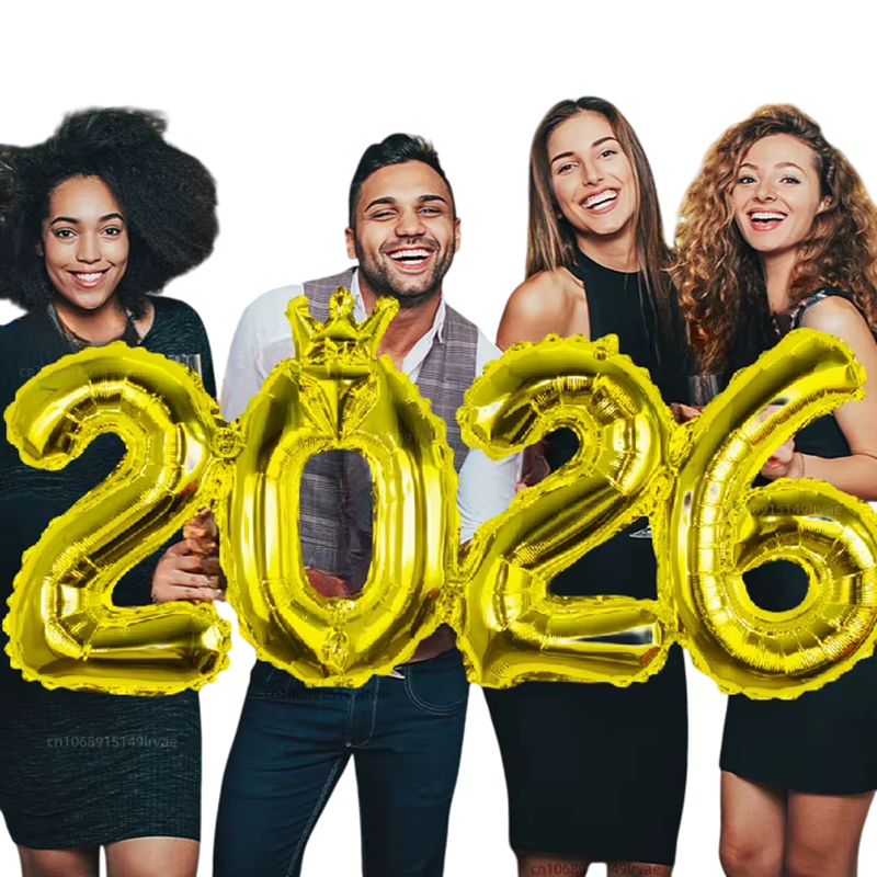 • Inhoud van de verpakking: 4x foliebaloon met de cijfers 2 0 2 6