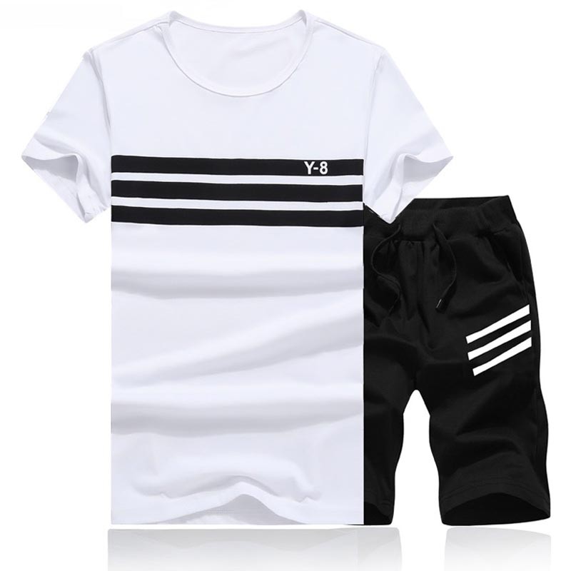 Gestreepte herenset - T-shirt en short J979