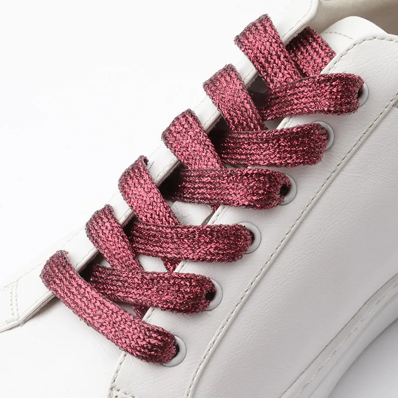 Voeg een glinsterend detail toe aan je schoenen met deze glimmende platte veters . Hiermee verander je elk paar sneakers in een origineel mode-item. Dankzij hun lengte van 100 cm zijn ze ideaal voor lage en halfhoge schoenen, of het nu gaat om streetwear, een sportieve stijl of een elegant contrast met een eenvoudige outfit. Het glanzende oppervlak trekt de aandacht en geeft de schoenen een uniek tintje. Ze zijn gemaakt van een sterk, maar flexibel materiaal dat gemakkelijk te knopen is en goed blijft zitten. Een eenvoudige manier om stijl en originaliteit uit te drukken.