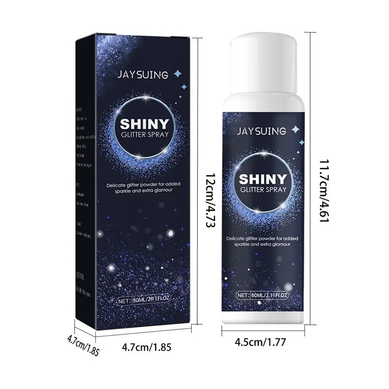 Glanzende verhelderende spray 60 ml 12 x 4,7 x 4,7 cm Glanzende zilveren spray voor haar, lichaam en gezicht Directe cosmetische verhelderaar