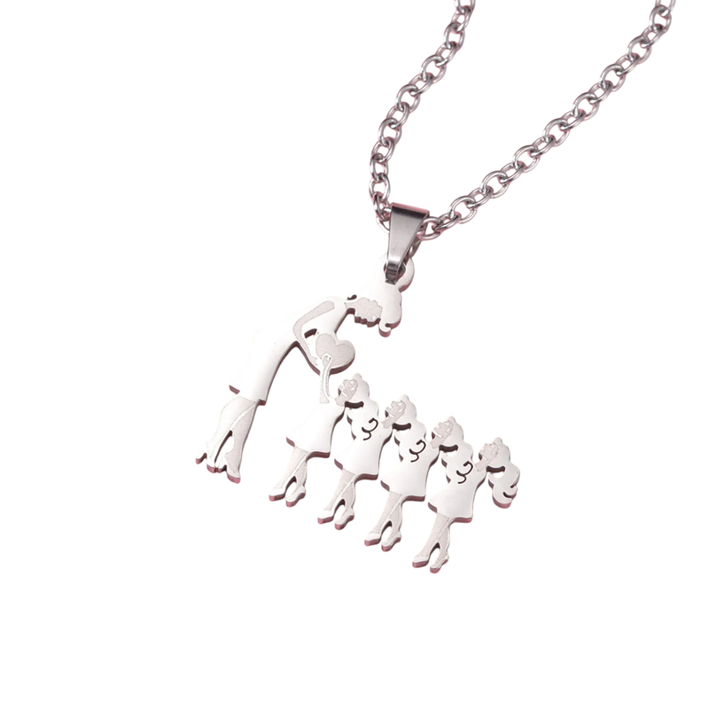 Stijlvolle ketting met een hanger van mama en vier dochters symboliseert liefde en familieband. Ideaal cadeau voor mama of oma. Volledige beschrijving