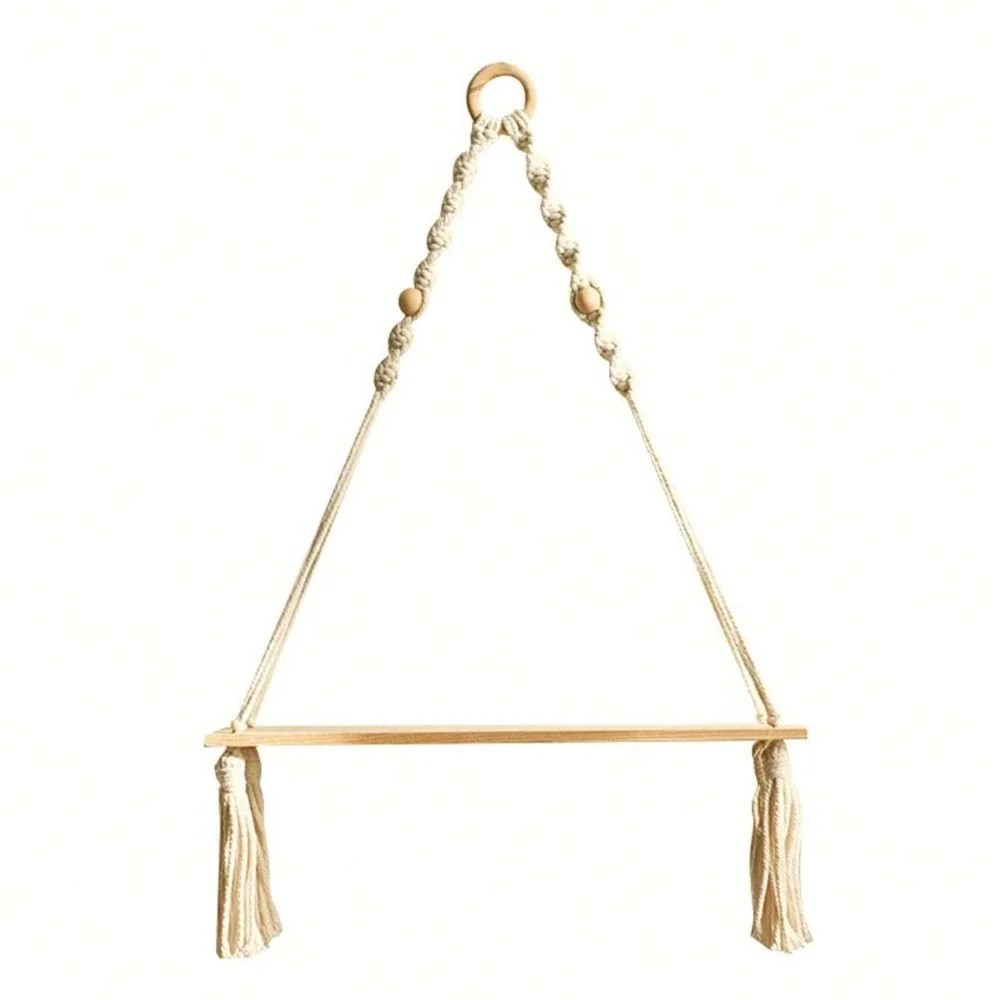 Deze decoratieve hangende plank vertegenwoordigt een combinatie van functionaliteit en esthetisch ontwerp. Het biedt praktische opbergruimte en maakt de kamer tegelijkertijd gezelliger met een natuurlijke uitstraling. Ideale oplossing voor het tentoonstellen van kleine decoraties zonder de noodzaak van klassieke wandmontage.