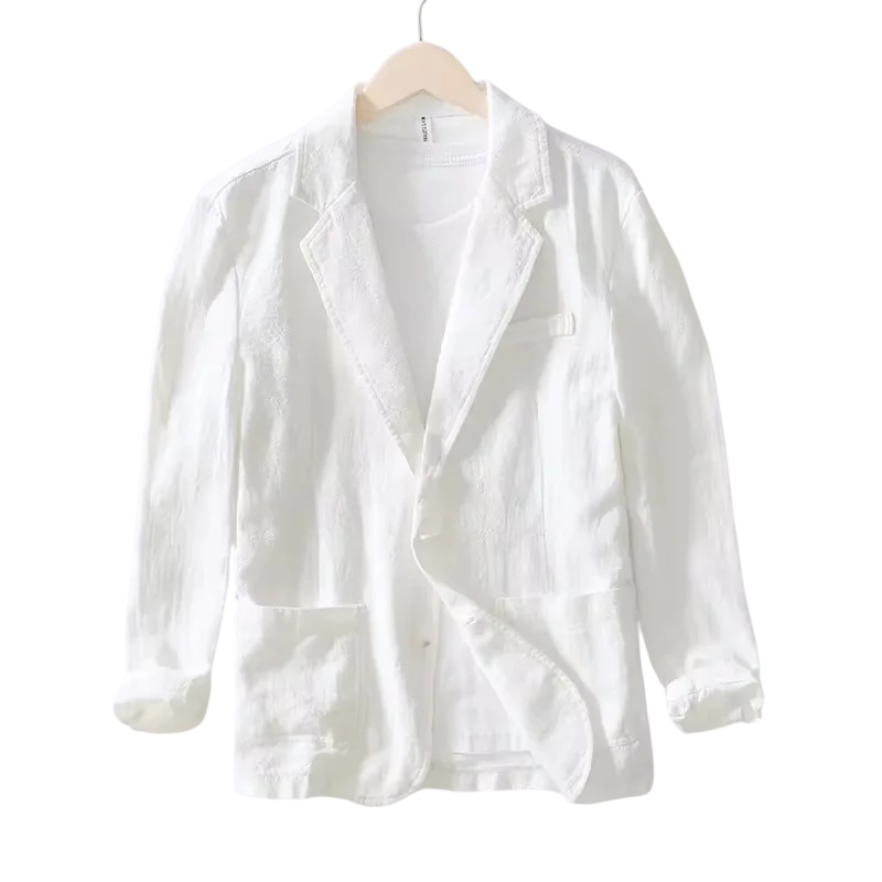 Lichte en ademende herenblazer van een combinatie van linnen en katoen biedt elegantie, comfort en een tijdloze uitstraling voor formele en casual gelegenheden. Volledige beschrijving