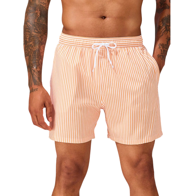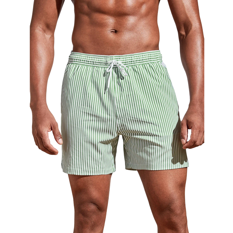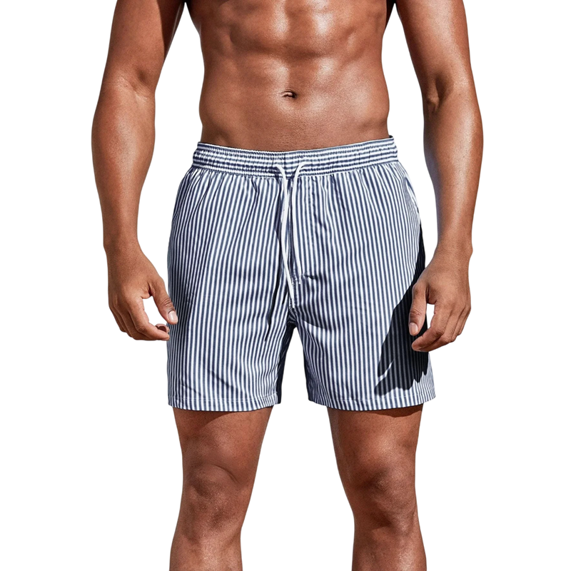 Stijlvolle heren zwembroeken met een gestreept patroon zijn de ideale keuze voor mannen die een moderne uitstraling willen combineren met maximaal comfort. De combinatie van materialen Polyester en spandex zorgt voor lichtheid, elasticiteit en comfortabel dragen gedurende de hele dag. Dankzij eigenschappen zoals Sneldrogend materiaal blijven de zwembroeken aangenaam, zelfs na het zwemmen. Praktische Trekkoord in de taille maakt het gemakkelijk om de taille aan te passen. De shortsnit biedt voldoende bewegingsvrijheid bij het zwemmen, sporten en ontspannen.
