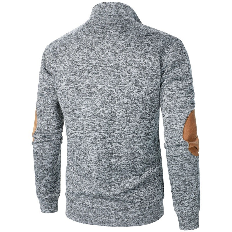 1× heren trui met knoopkraag en patches op de ellebogen (gekozen kleur en maat)
