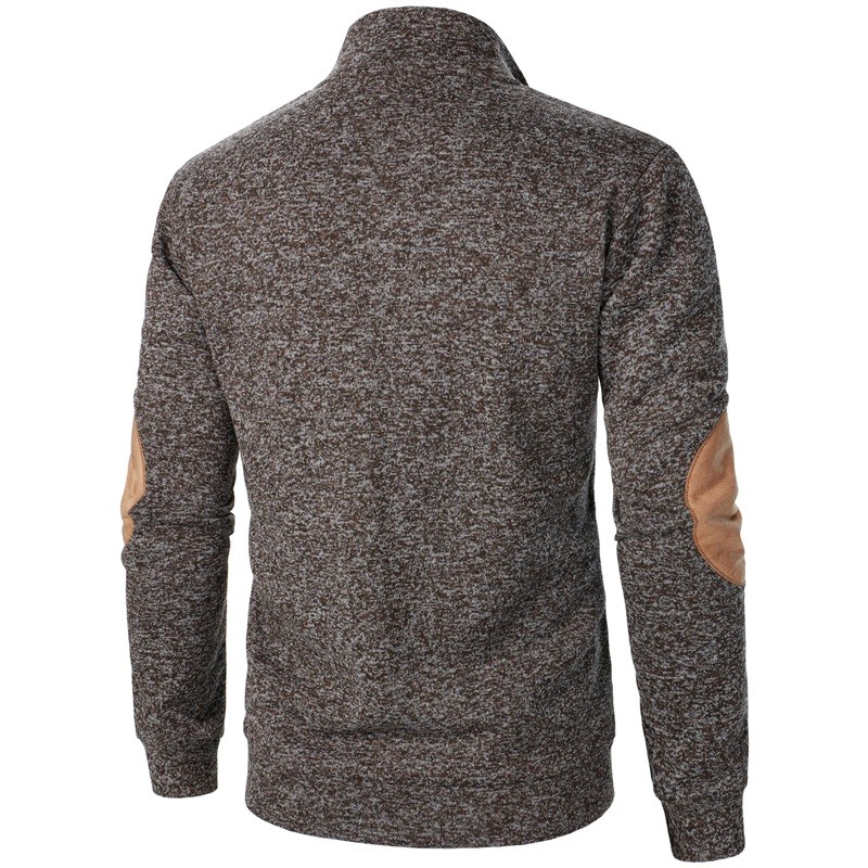 Heren trui met lange mouwen en kraag Effen elegante trui met knopen bij de kraag Bruine patches op de ellebogen Polyester Verschillende kleuren