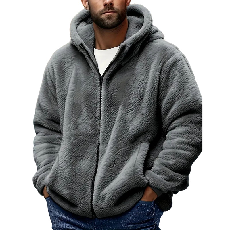 Heren winterjas Pluche warme jas met col Sluiting met rits Praktische zakken Comfortabele winterjas van polyester Zachte warme uitvoering