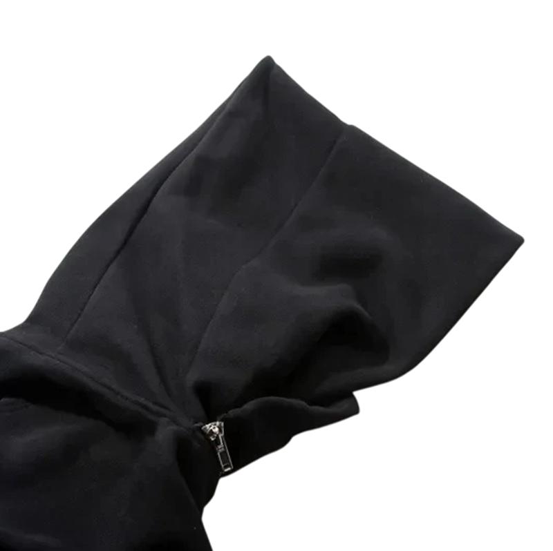 Deze hoodie vertegenwoordigt de combinatie van kwaliteit, functionaliteit en originaliteit. Dankzij de combinatie van vier materialen biedt het de ideale balans tussen comfort, elasticiteit en duurzaamheid. De asymmetrische rits voegt uniciteit toe en maakt van de hoodie een stuk dat opvalt in elke garderobe. De zwarte uitvoering benadrukt het universele en elegante karakter dat past bij zowel sportieve als stedelijke stijlen. Deze hoodie is de perfecte keuze voor mannen die stijlvol willen zijn, maar tegelijkertijd de hele dag comfortabel willen voelen.