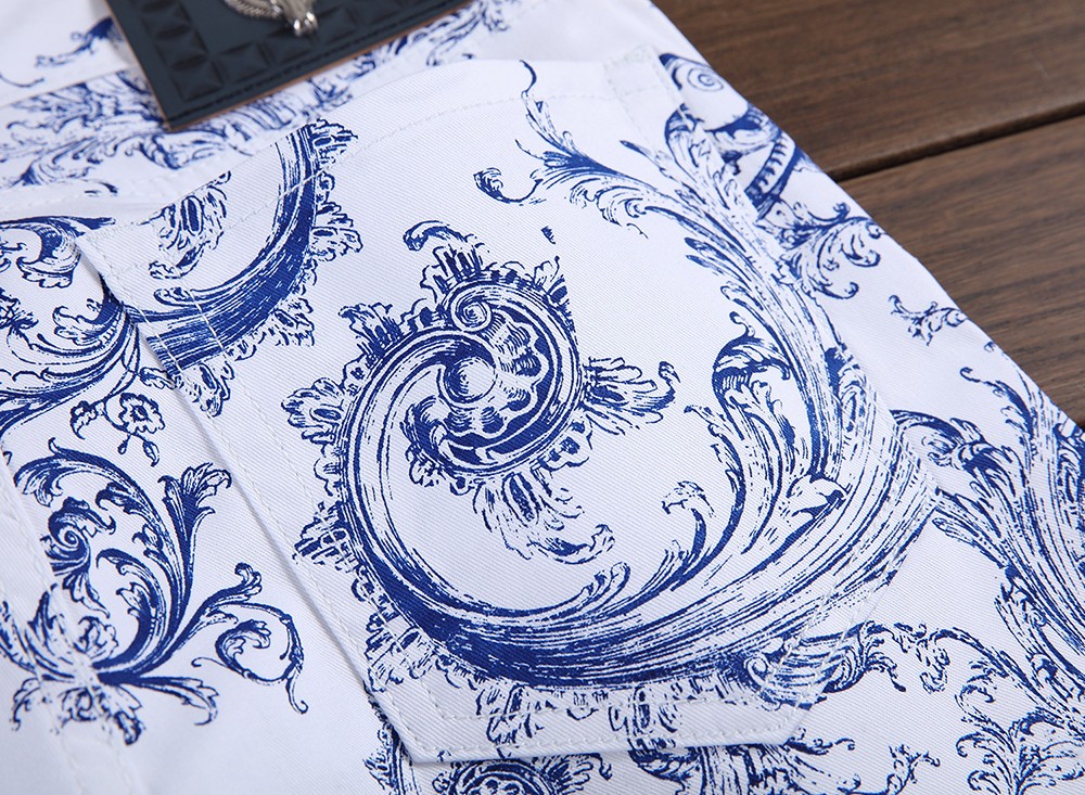 Zie er cool uit met deze jeans met een interessant patroon.