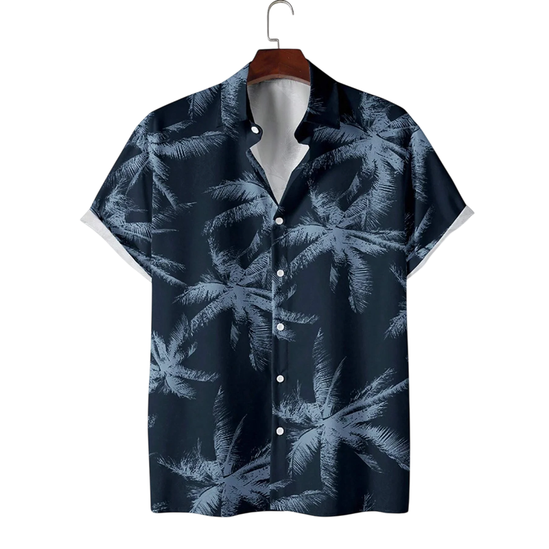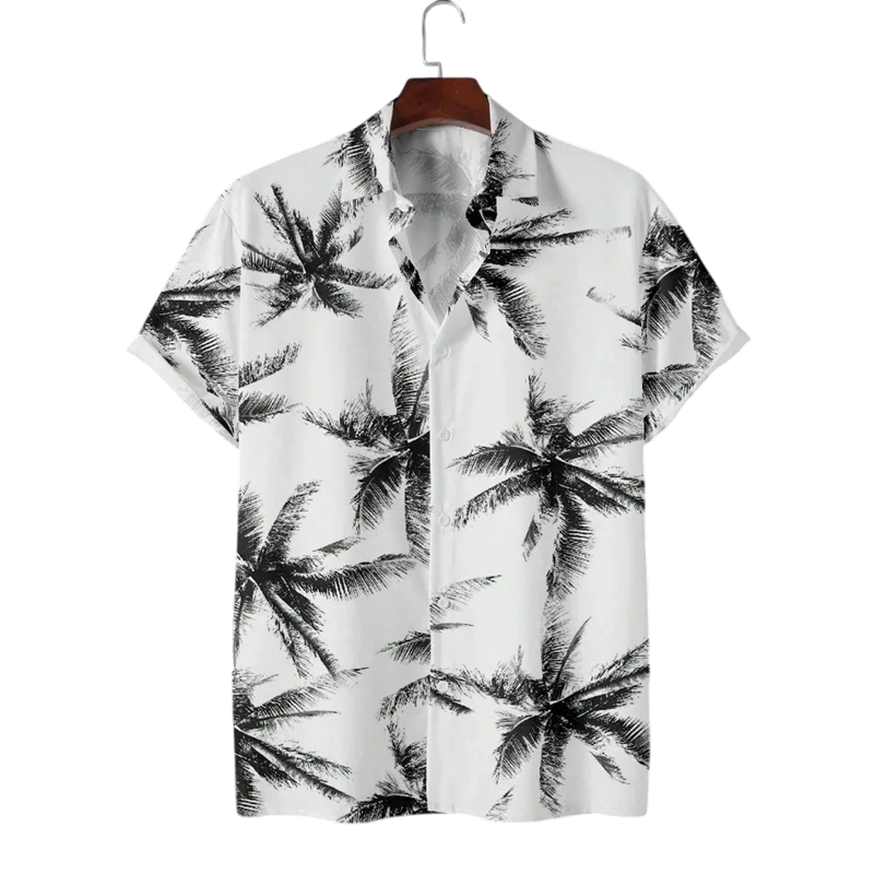 Zomer herenoverhemd met palmprint, korte mouwen en V-hals biedt comfort, flexibiliteit en een ontspannen stijl voor warme dagen. Volledige beschrijving