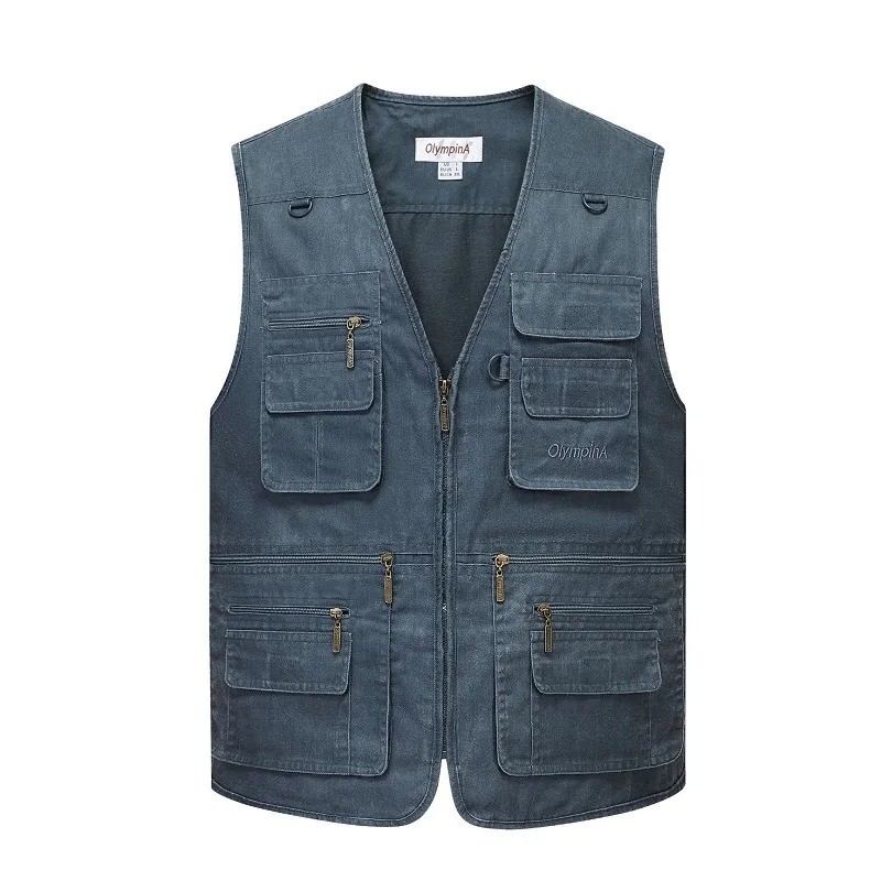 Herenvest met ritszakken en ritsluiting katoen polyester voor werk, vissen, wandelen en dagelijks gebruik