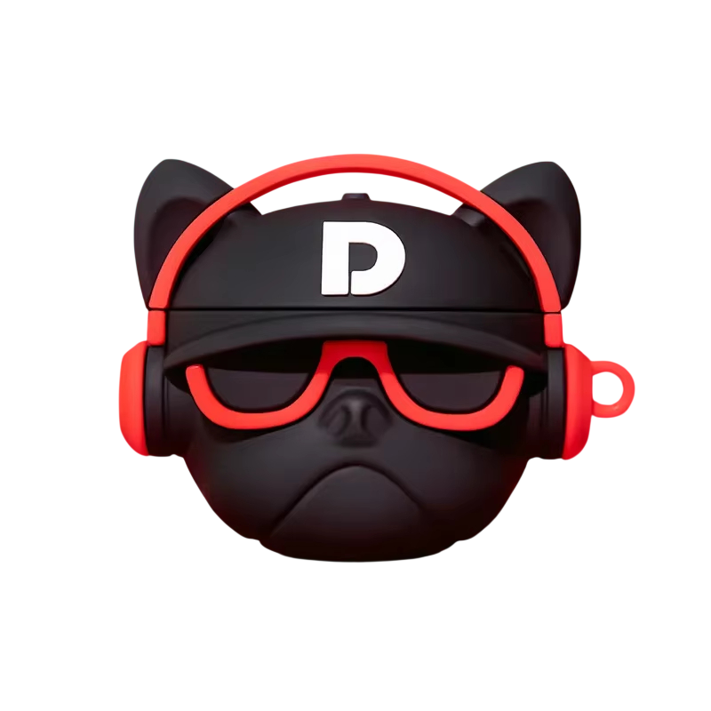 Stijlvolle hoes voor AirPods 4 met 3D bulldog, gemaakt van zacht siliconen, beschermt tegen krassen, schokken en stof. Eenvoudige toegang tot de oplaadpoort. Volledige beschrijving