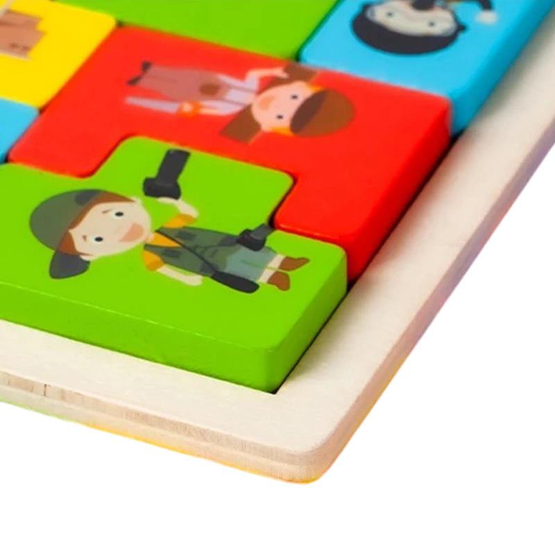 Deze houten puzzelblokken met afbeeldingen van verschillende beroepen zijn ontworpen zodat kinderen op een leuke manier hun logisch denken en praktische vaardigheden ontwikkelen. Elke afbeelding stelt bekende beroepen voor, zoals brandweerman, arbeider of tuinier, waardoor kinderen op natuurlijke wijze hun bewustzijn van de wereld om hen heen uitbreiden. Puzzels stimuleren concentratie, geduld en het vermogen om taken stap voor stap op te lossen. Dankzij het overzichtelijke ontwerp zijn ze geschikt voor zelfstandig spel en gezamenlijk puzzelen met ouders. De compacte afmeting van het bord maakt het gemakkelijk om thuis en onderweg te gebruiken.