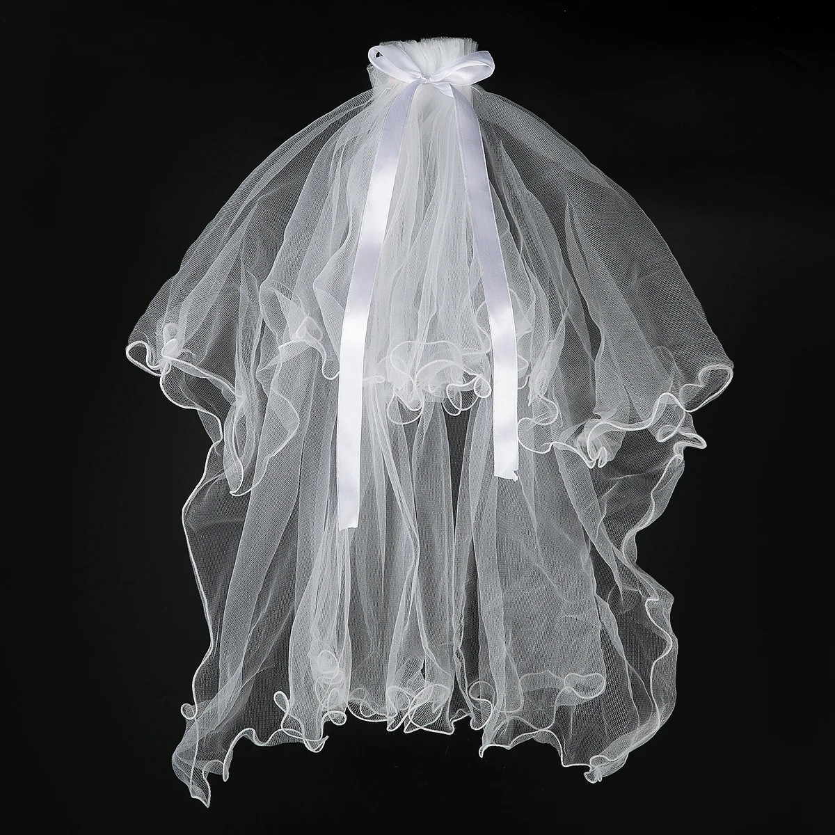Huwelijksstrik voor in het haar Witte tule sluier met golvende rand Elegante accessoire voor bruiloft vrijgezellenfeest