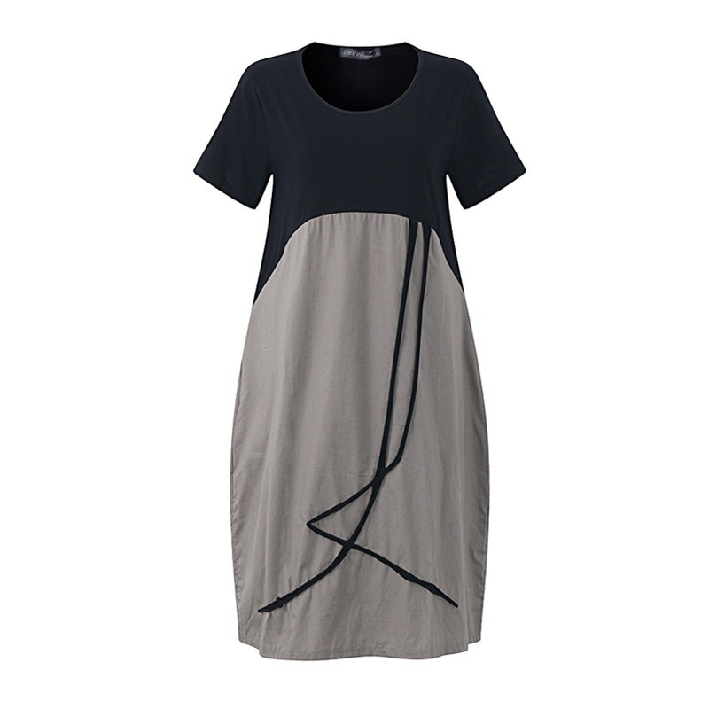 Comfortabele damesjurk. Tuniekmodel met korte mouwen in midi-lengte.
