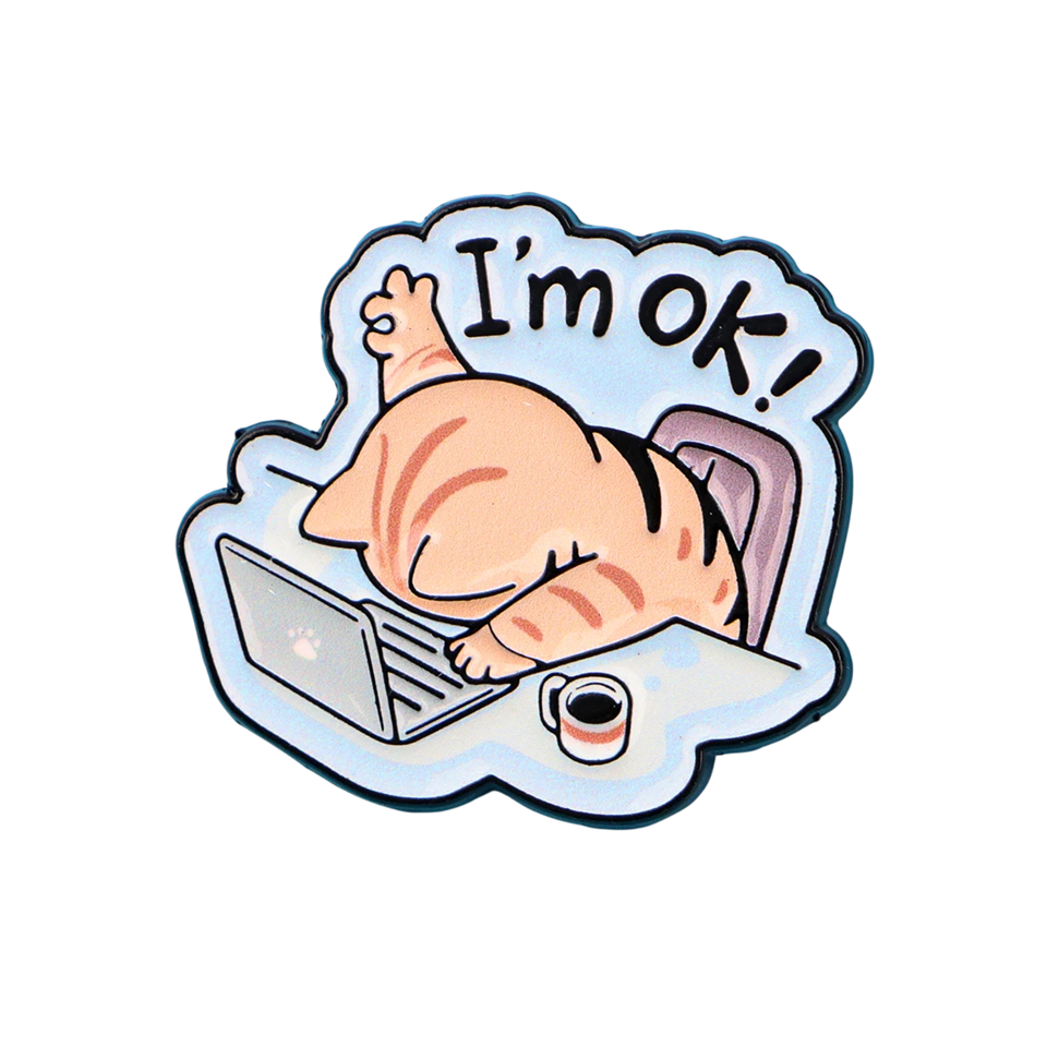 Startpagina Startpagina Sieraden en horloges Broches Kantoorspeld 2,9 x 3,2 cm Kat met de tekst „I´m ok!“ Metalen speld van zinklegering Stijlvolle accessoire voor kleding Cadeau