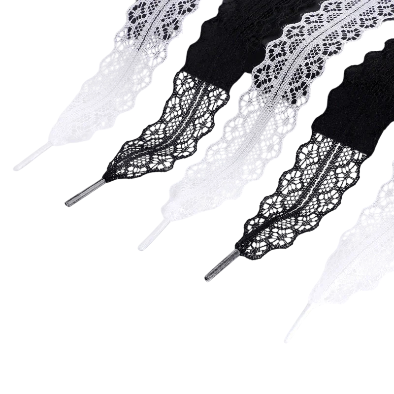 Startpagina Startpagina Schoenen Schoenveters Kantveters 120 x 2,9 cm Zijden platte schoenveters Delicate kantveters voor ballerina's, sneakers en romantische schoenen