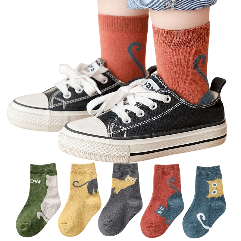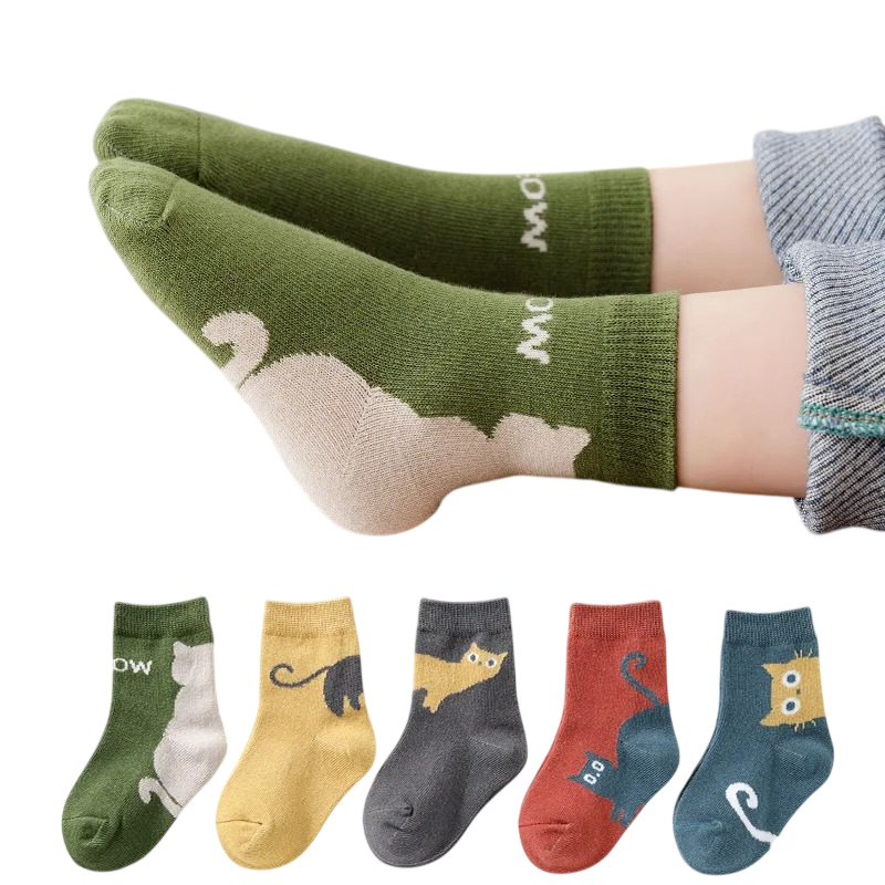 Kinder unisex sokken 5 paar Kleurrijke sokken met kattenmotief Polyester elastaan Elastische comfortabele sokken voor kinderen voor dagelijks gebruik