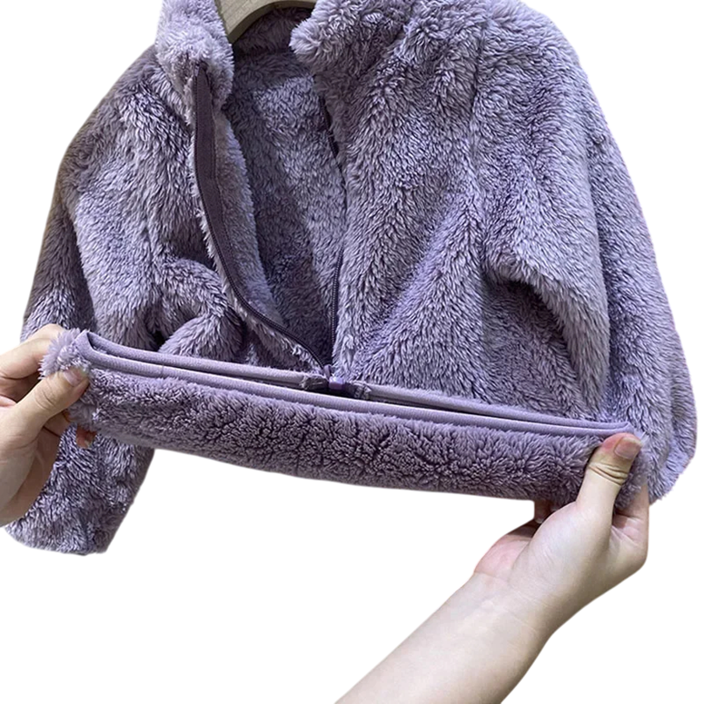 Zachte pluche kinder winterjas met hoge kraag en ritssluiting. Warme polyester biedt warmte en comfort voor dagelijks gebruik. Volledige beschrijving