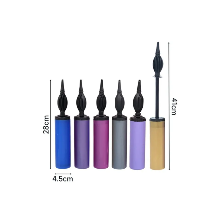 Duurzame kleurige handpomp met telescopische spuitmond voor eenvoudig en snel opblazen van ballonnen tijdens feesten en vieringen. Volledige beschrijving
