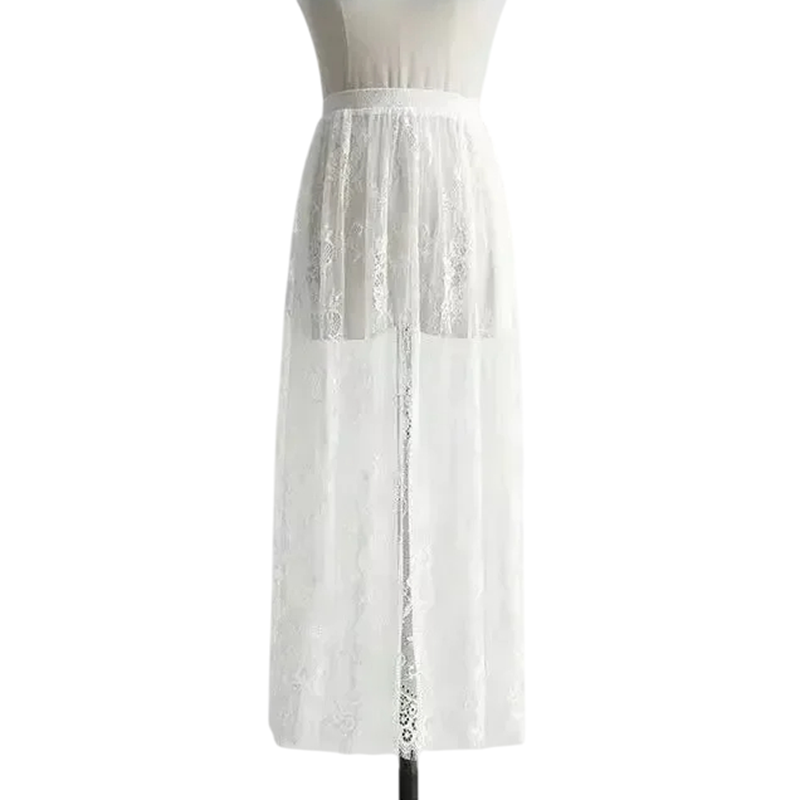 Lange kanten tule rok met hoge elastische taille Transparante elegante rok lengte 80 cm Gelaagde rok voor dames voor fotoshoots en feesten