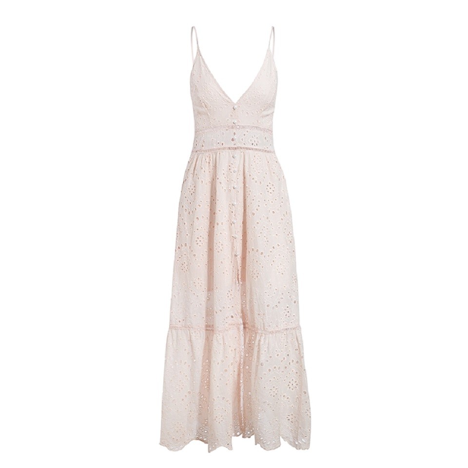 Prachtig romantisch zomerjurkje met geperforeerd patroon.