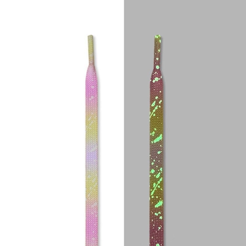 Fluorescerende veters. De veters lichten op in het donker. Platte veters. Volledige beschrijving