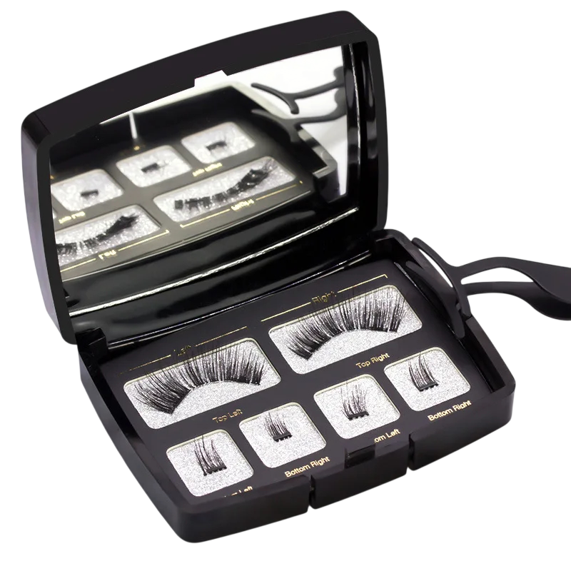 • Inhoud van de verpakking: magnetische wimpers links en rechts, boven- en onder magnetische segmenten, beschermende hoes