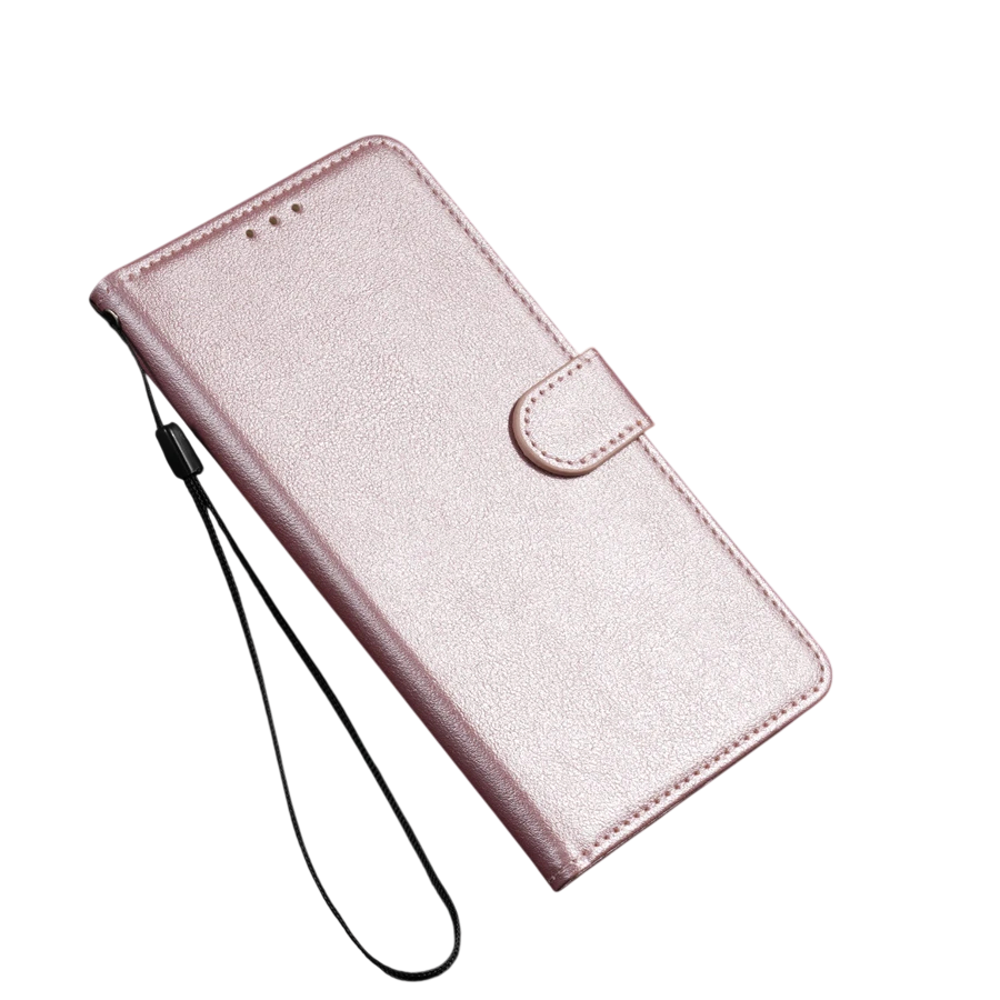 Elegante hoes ter bescherming van de telefoon met opbergruimte voor kaarten, magnetische sluiting, standaard en praktische handriem. Volledige beschrijving