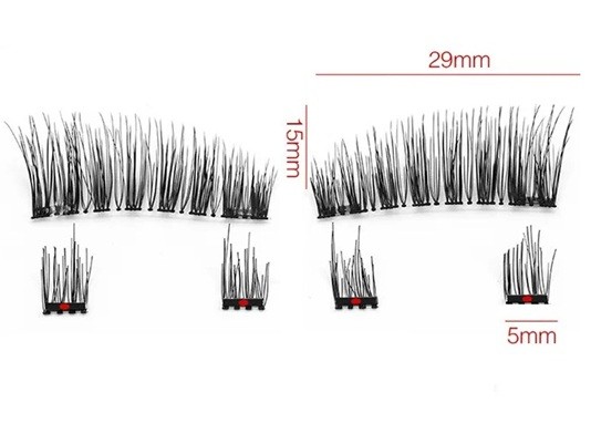 De set is ontworpen om snelle applicatie zonder lijm te bieden, wat de irritatie van de ogen minimaliseert en tijd bespaart bij het opmaken. Dankzij de afmetingen 15 x 29 mm creëren de wimpers een opvallend, maar toch natuurlijk effect. Fijne magneten houden stabiel over de hele lengte van het ooglid en helpen een gelijkmatige uitstraling te bereiken. Het resultaat zijn 3D wimpers met een natuurlijke uitstraling, die de eigen wimpers optisch verdikken en de blik accentueren.