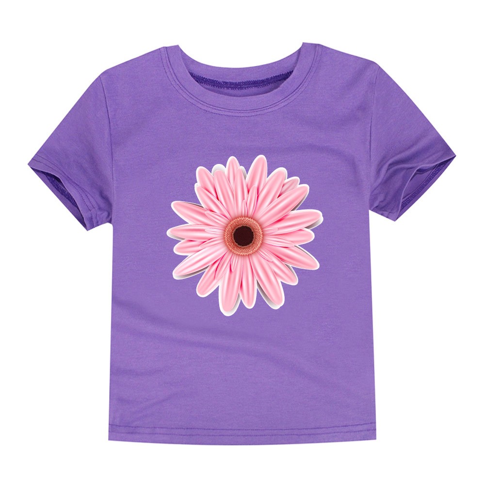 Mooi meisjes t-shirt met een grote bloem in het midden.