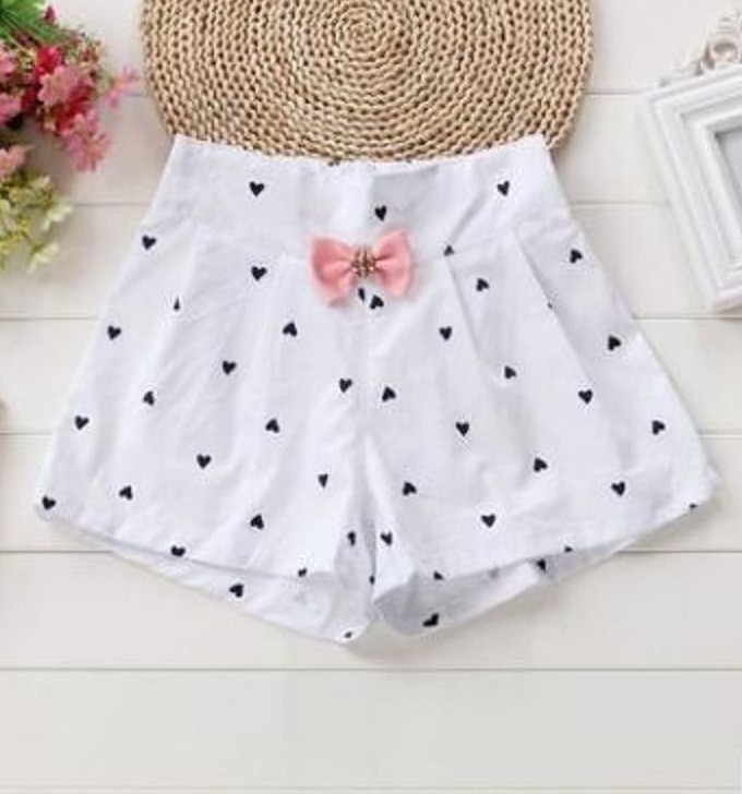 Prachtige shorts met hartjes zijn het lievelingsstuk van uw dochtertje.