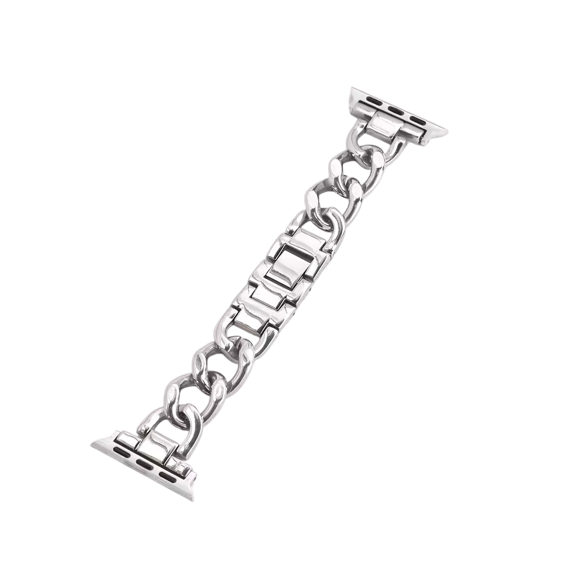 Een groot voordeel is de compatibiliteit met alle Apple Watch Series 1–9, SE en Apple Watch Ultra, die gebruikmaken van afmetingen van 42–49 mm. De zinklegering biedt hoge duurzaamheid, waardoor de band geschikt is voor langdurig gebruik zonder kwaliteitsverlies. Het stijlvolle ontwerp past perfect bij de moderne uitstraling van slimme horloges en geeft ze een luxueuzer en professioneler karakter. Eenvoudige installatie zonder gereedschap maakt een snelle vervanging van de band mogelijk, afhankelijk van de huidige outfit of situatie. De metalen schakels bieden flexibiliteit, sterkte en comfort tijdens het dragen gedurende de hele dag.