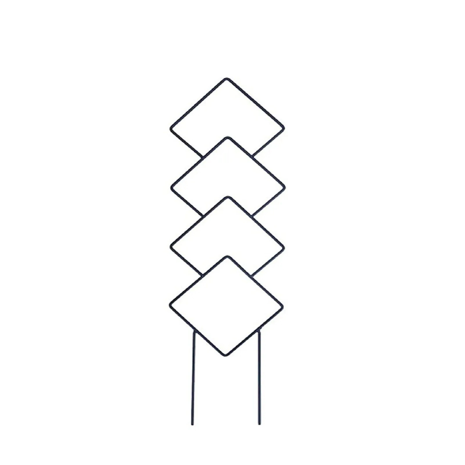 De ruitvormige indeling geeft de steun een ander uiterlijk in vergelijking met gewone rechte steunen en behoudt tegelijkertijd het functionele gebruik. De constructie biedt meer punten waarlangs stelen en scheuten naar behoefte kunnen worden geleid. De smalle uitvoering neemt niet veel ruimte in beslag en kan gemakkelijk tussen de bladeren en andere delen van de plant worden geïntegreerd. Hierdoor is de standaard geschikt voor regelmatige zorg voor planten die een stabielere steun tijdens de groei nodig hebben. De steun kan helpen de plant overzichtelijker en beter gericht te houden.