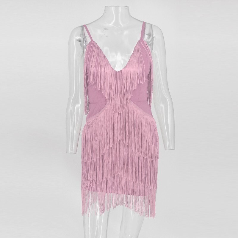 Eenvoudig gesneden mini-jurk met dunne bandjes.