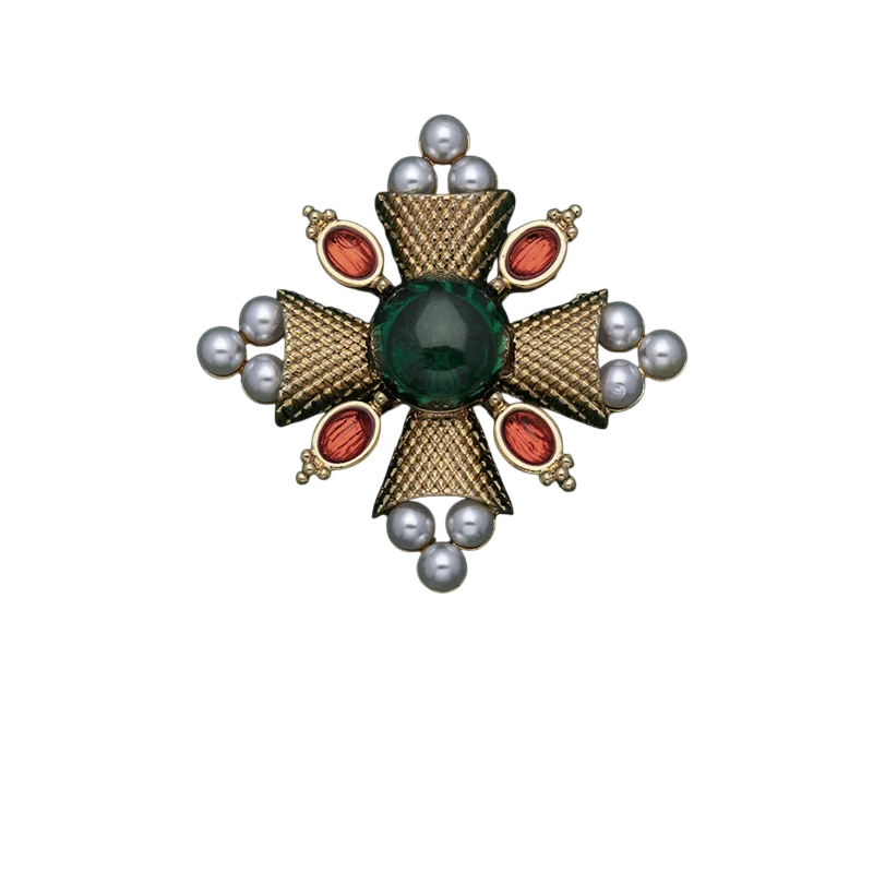 Deze modieuze barokke broche is een opvallende en toch elegante accessoire, die indruk maakt met zijn precieze afwerking en luxueuze uitstraling. De combinatie van kristallen parels en glinsterende steentjes creëert een harmonisch geheel dat tijdloos en smaakvol is. Dankzij de uitgebalanceerde afmetingen wordt de broche een dominant element van de outfit, zonder storend te zijn. De barokke stijl geeft het sieraad een noblesse en feestelijk karakter. De broche is geschikt voor sociale evenementen, maar ook als een elegant detail van dagelijkse kleding.