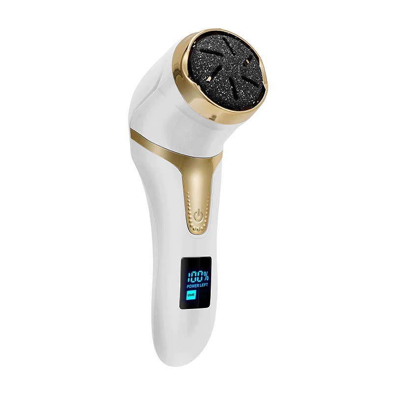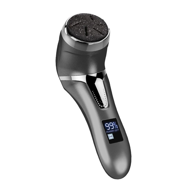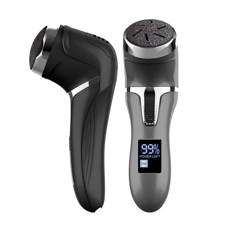 Oplaadbare elektrische voetvijl met stofafzuiging, LCD-display en drie schuurkoppen voor een comfortabele pedicure thuis. Volledige beschrijving