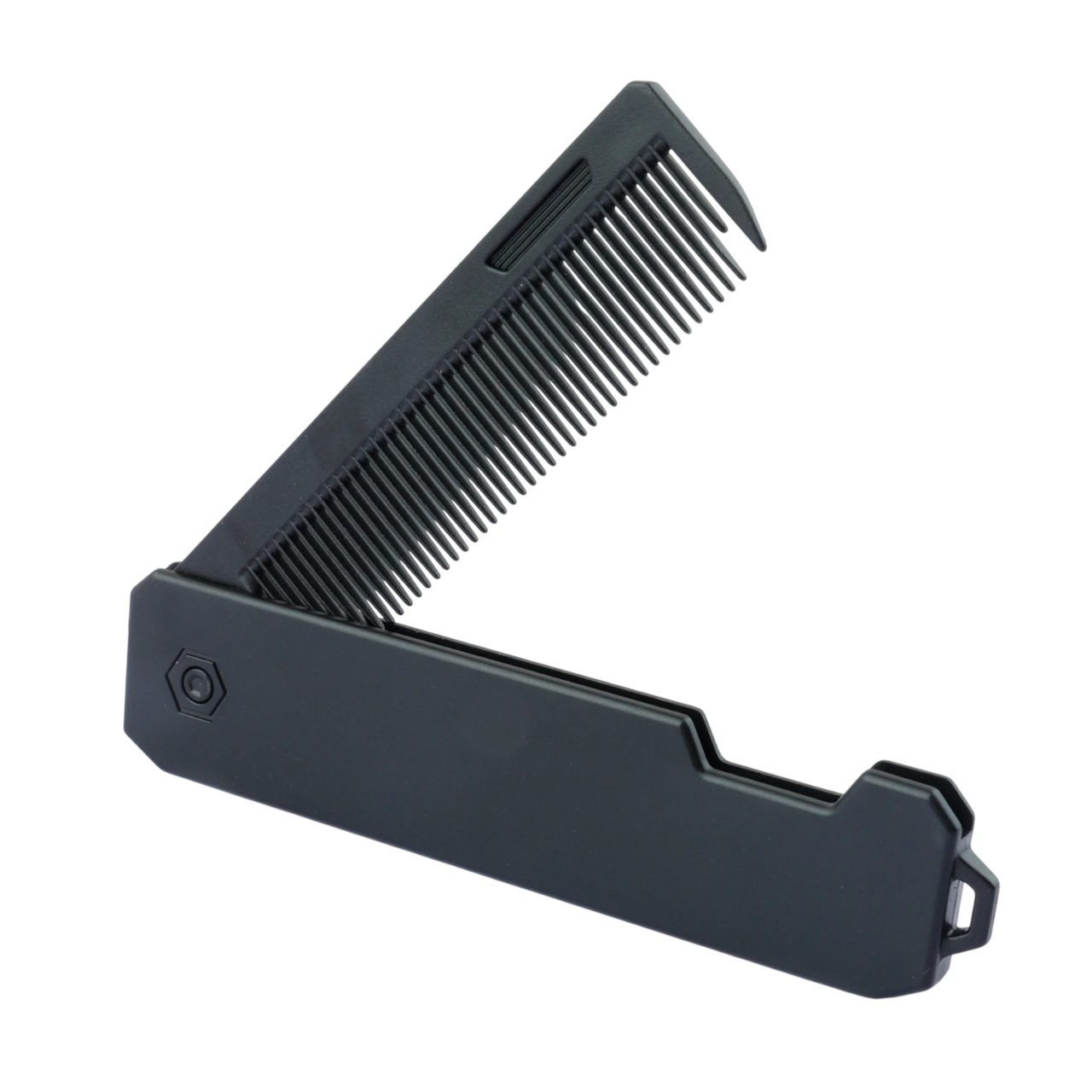 Deze opvouwbare kam met fijne tanden is de ideale hulp voor dagelijkse haar- en baardverzorging. Dankzij de compacte afmetingen past hij in elke zak, tas of rugzak en is hij altijd binnen handbereik wanneer je je kapsel of baard wilt bijwerken. De opgevouwen kam meet slechts 12,7 cm, en wanneer hij is uitgeklapt, heeft hij een lengte van 22,2 cm.