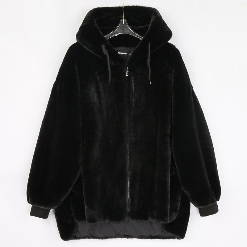Oversized damesjas met harige nerts