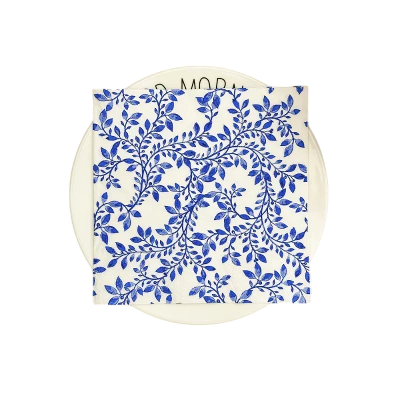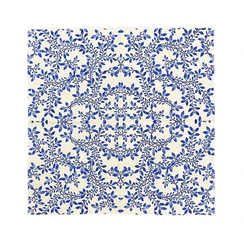 De servetten zijn bedrukt met natuurlijke voedselveilige inkt op waterbasis, die veilig is voor contact met voedsel. Dankzij de hoogwaardige afwerking behouden ze hun vorm, scheuren ze niet en blijven ze aangenaam zacht. Het blauw-witte ontwerp past perfect bij rustieke, vintage en moderne tafelstijlen.