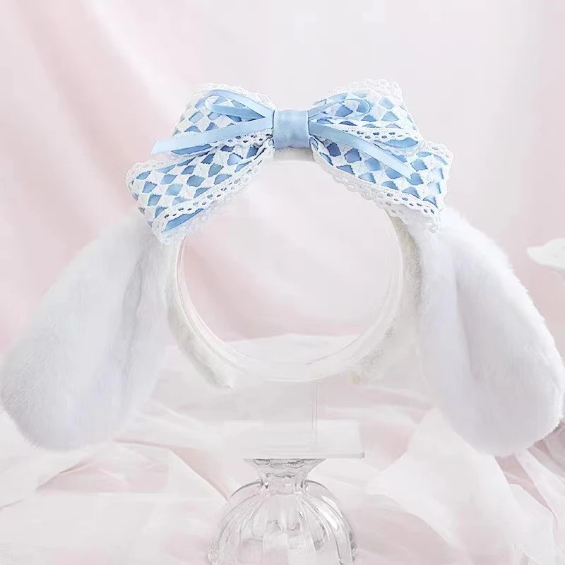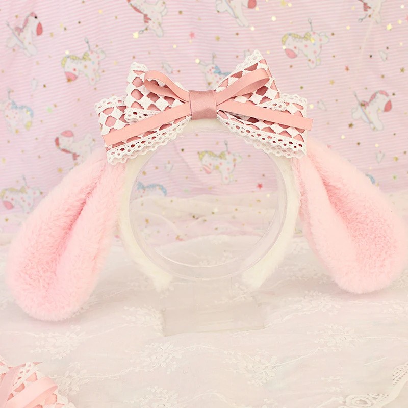 Pluche haarband met konijnenoren en strikje Zachte dames haarband Carnaval en feestversiering voor kostuum