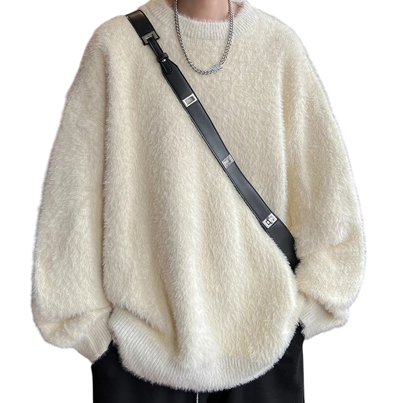 Pluche heren sweater met ronde hals Effen losse warme gebreide sweater Stijlvolle herfst winter sweater Acryl Polyester Nylon Viscose Verschillende kleuren