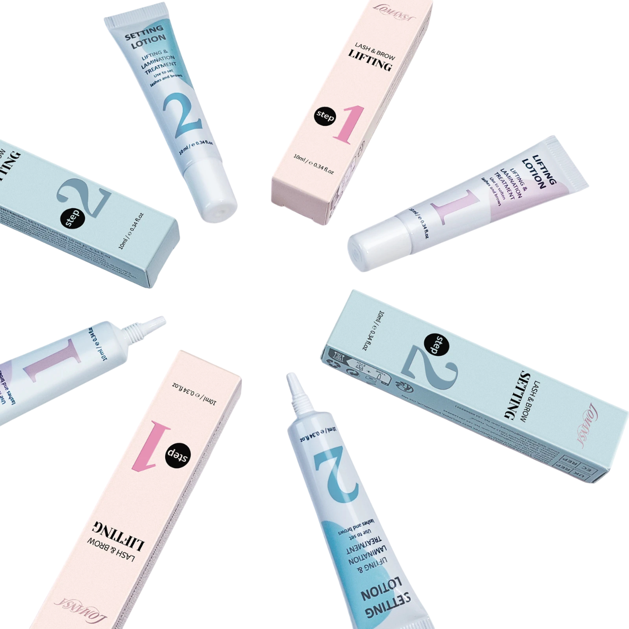 Professionele set voor het lamineren van wenkbrauwen en lash lift van wimpers 2×10 ml tweefasensysteem lifting en fixatielotion permanente styling van wenkbrauwen en wimpers